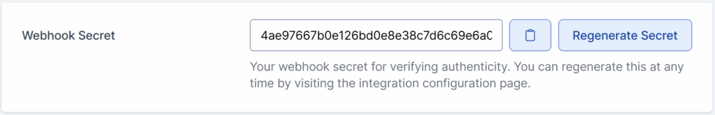 - After regenerating, you must update your webhook endpoint to use the new secret