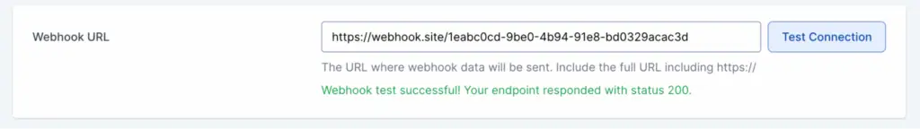 Once done, click Test Connection to verify your endpoint is reachable. You should receive a webhook with a selected issue created event, and a success message with status 200.