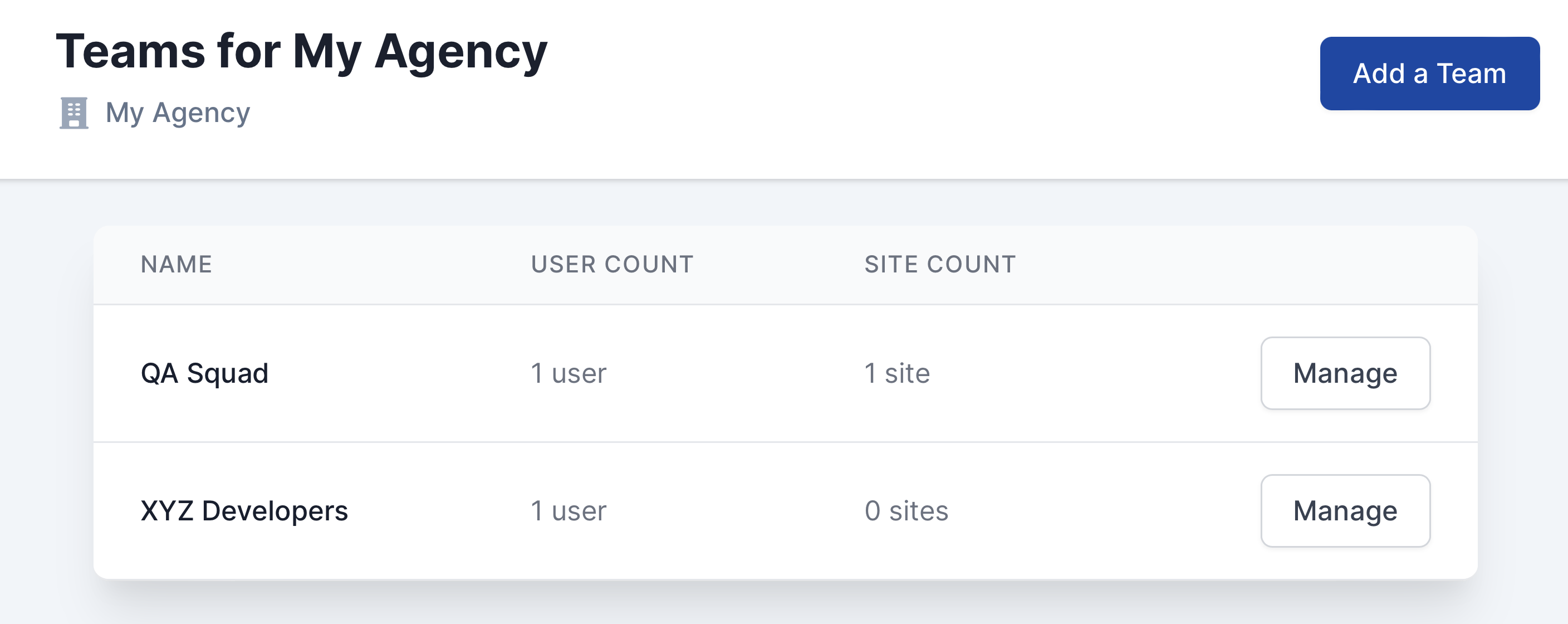 For example, agencies can grant clients access to their own sites while keeping other sites private. Teams are also ideal for organizing multiple development groups, ensuring they only see the sites they manage.