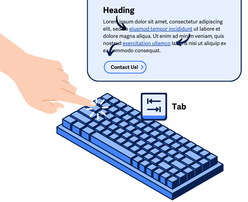 Everything on a web page must be fully usable with just a keyboard. If someone can do it with a mouse, touch, or gesture, they must also be able to do it using the keyboard—with no exceptions.
